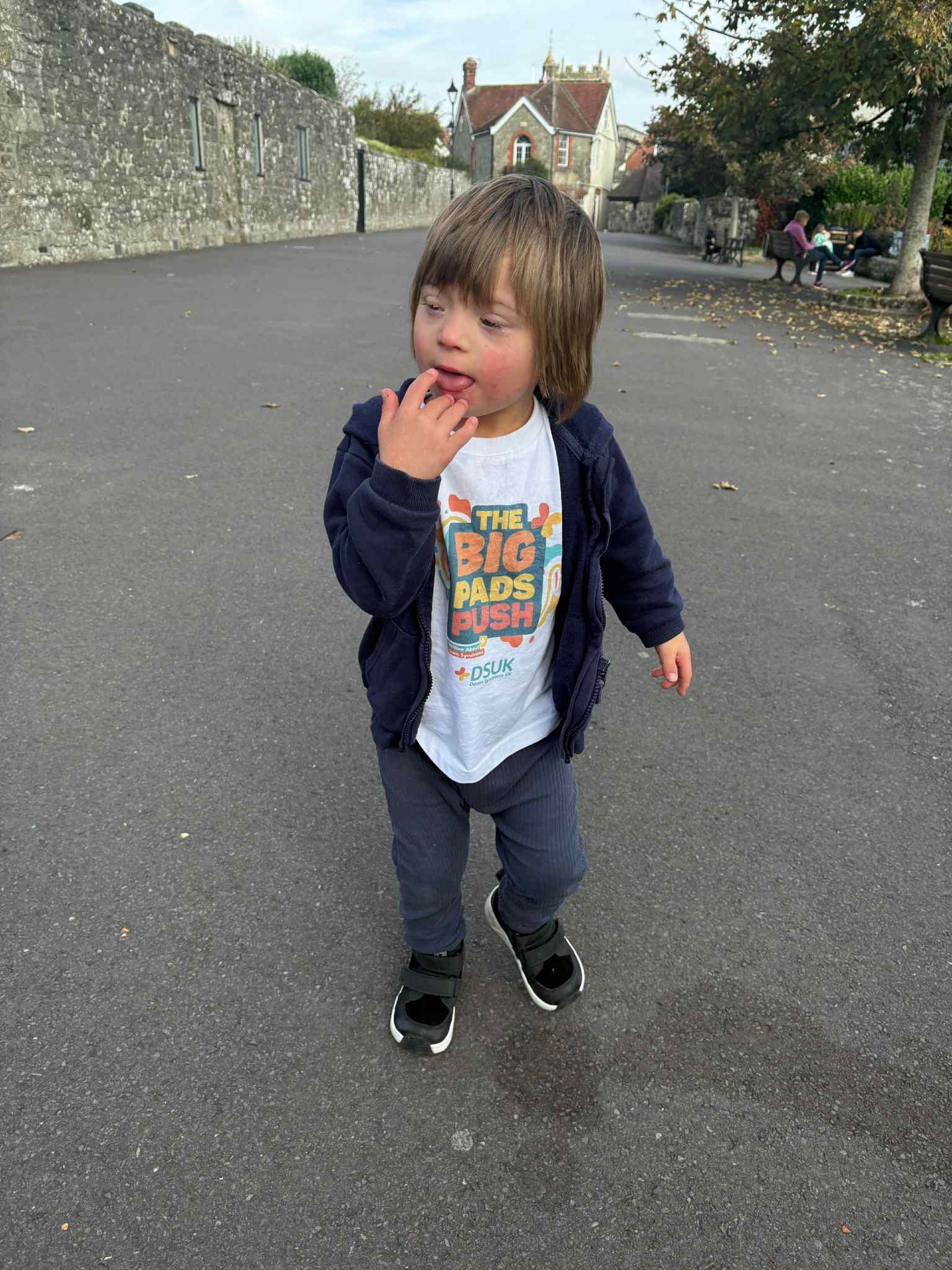 “I have been part of the DSUK family since Johnny was born in 2020. While my daughter’s pregnancy flagged up a few things, we didn’t have a firm diagnosis until he was two days old. I immediately joined the grandparents’ group and sent my daughter the link for the new parents’ group. Since then DSUK has been a huge support to our whole family and I try and support them financially in return whenever I can. That’s why we’re doing the 2.1-mile walk. Johnny has only been walking properly for a year so it will be a huge achievement for him.”